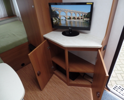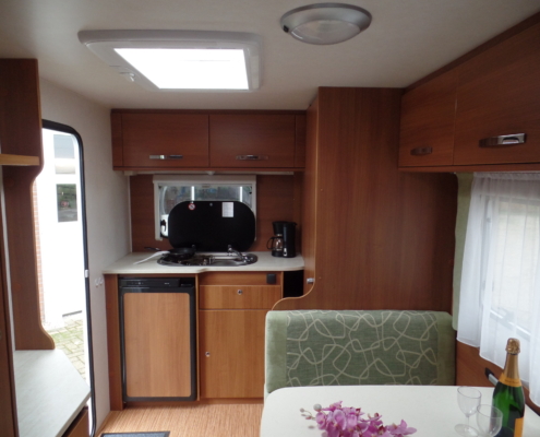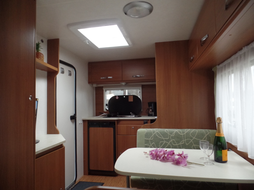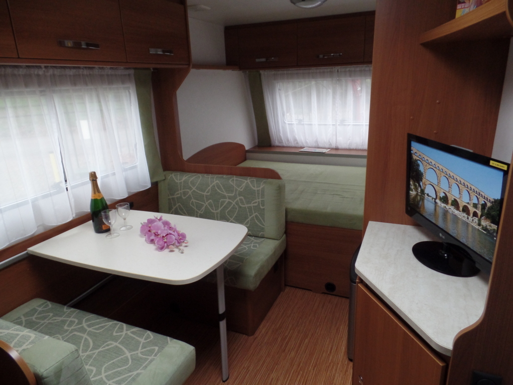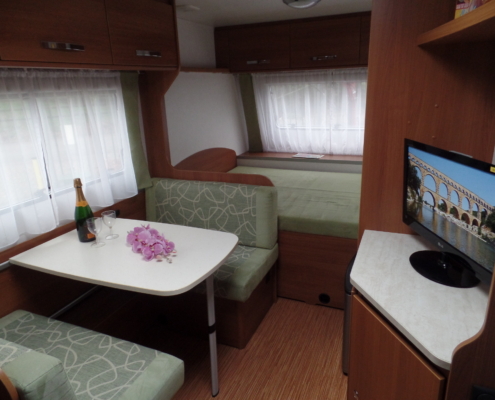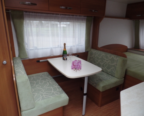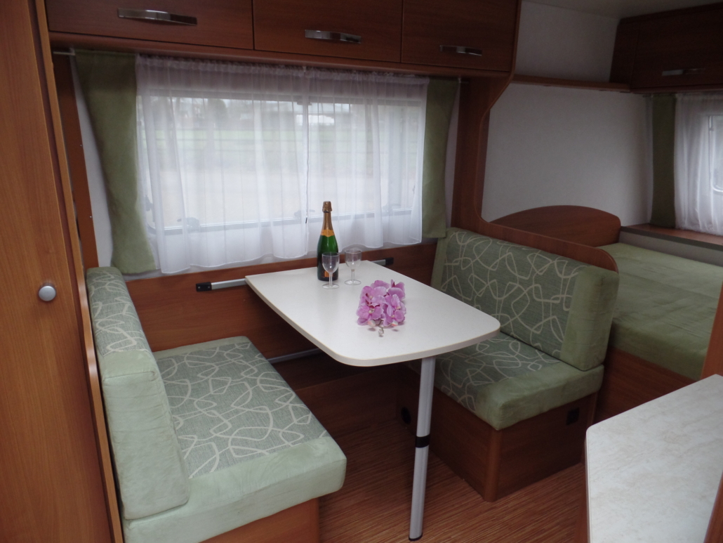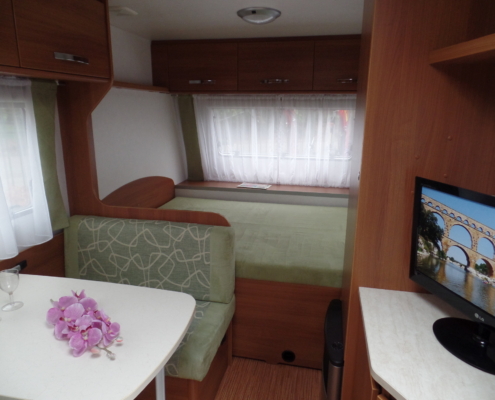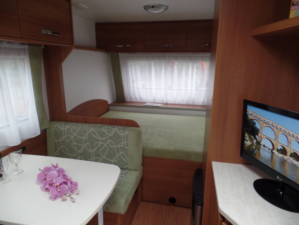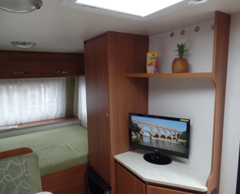 | Voor: | Vast bed in de breedte van de caravan |