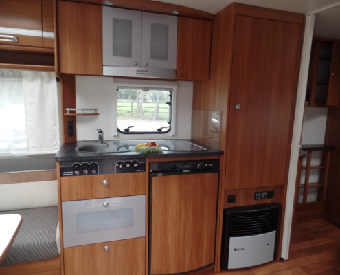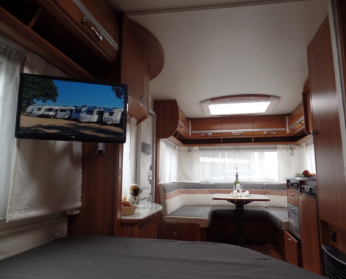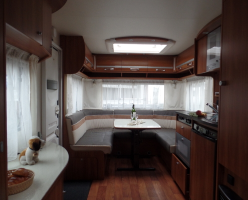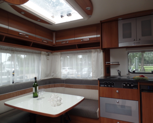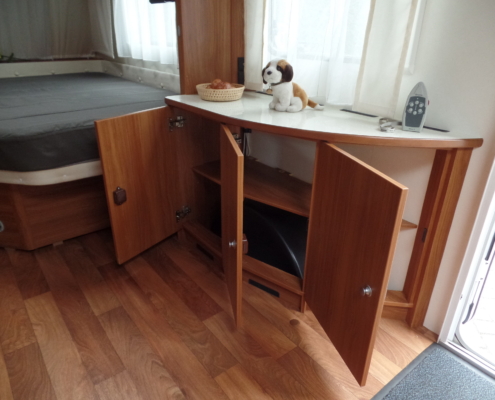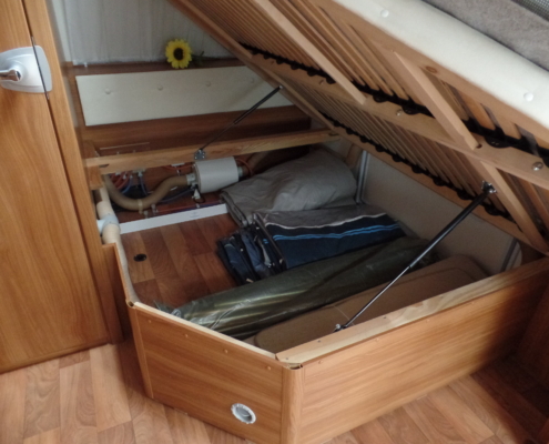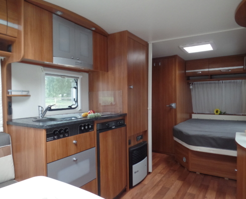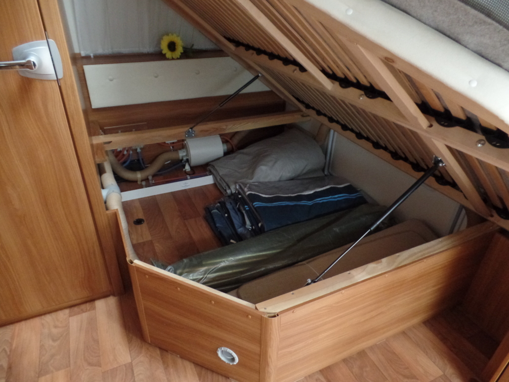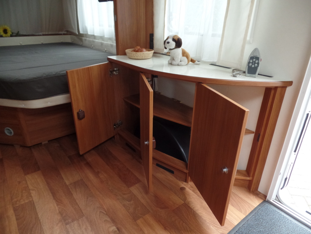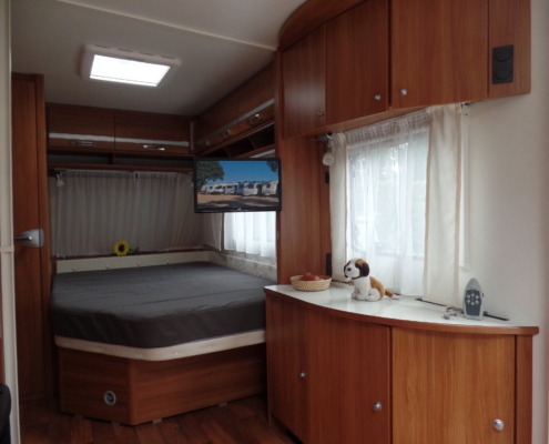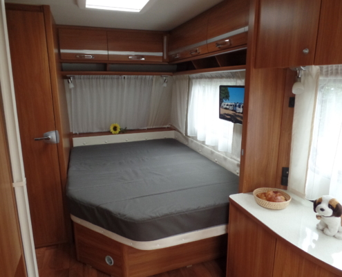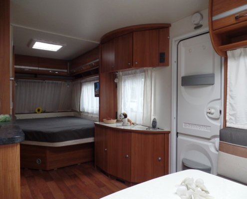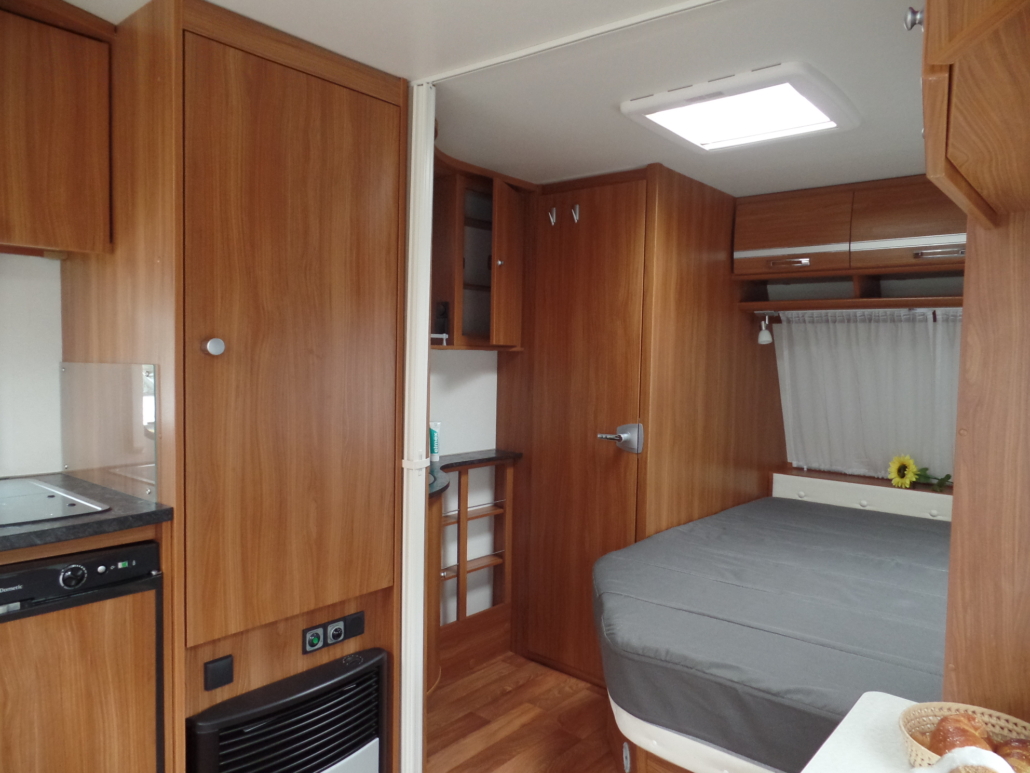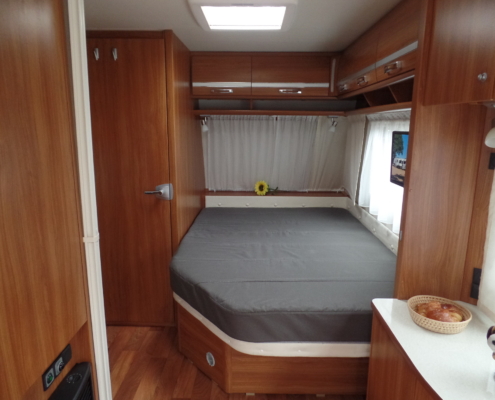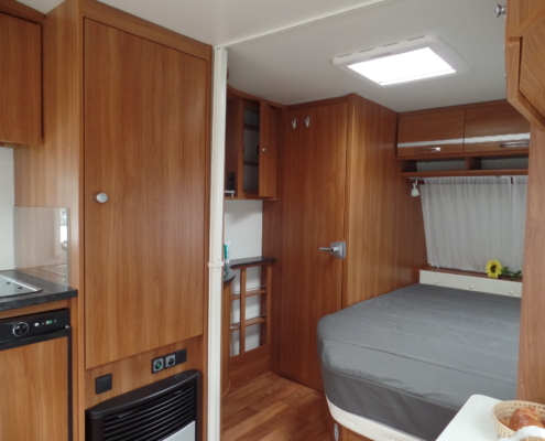Voor: | Vast bed in de lengte (frans bed 140x203) met toilet en wastafel |