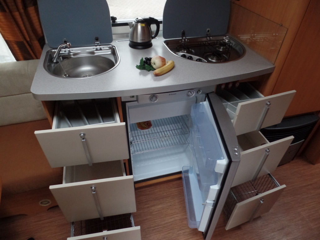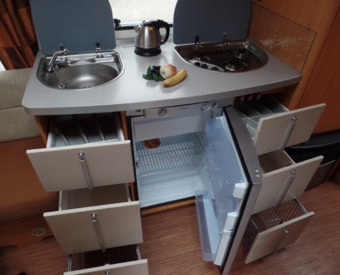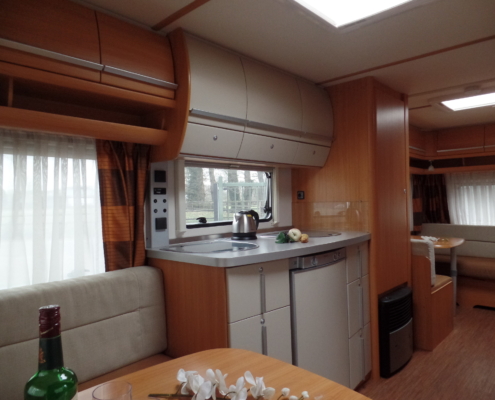 | Midden: | Keuken en kledingkast met er tegenover het toilet met wastafel |