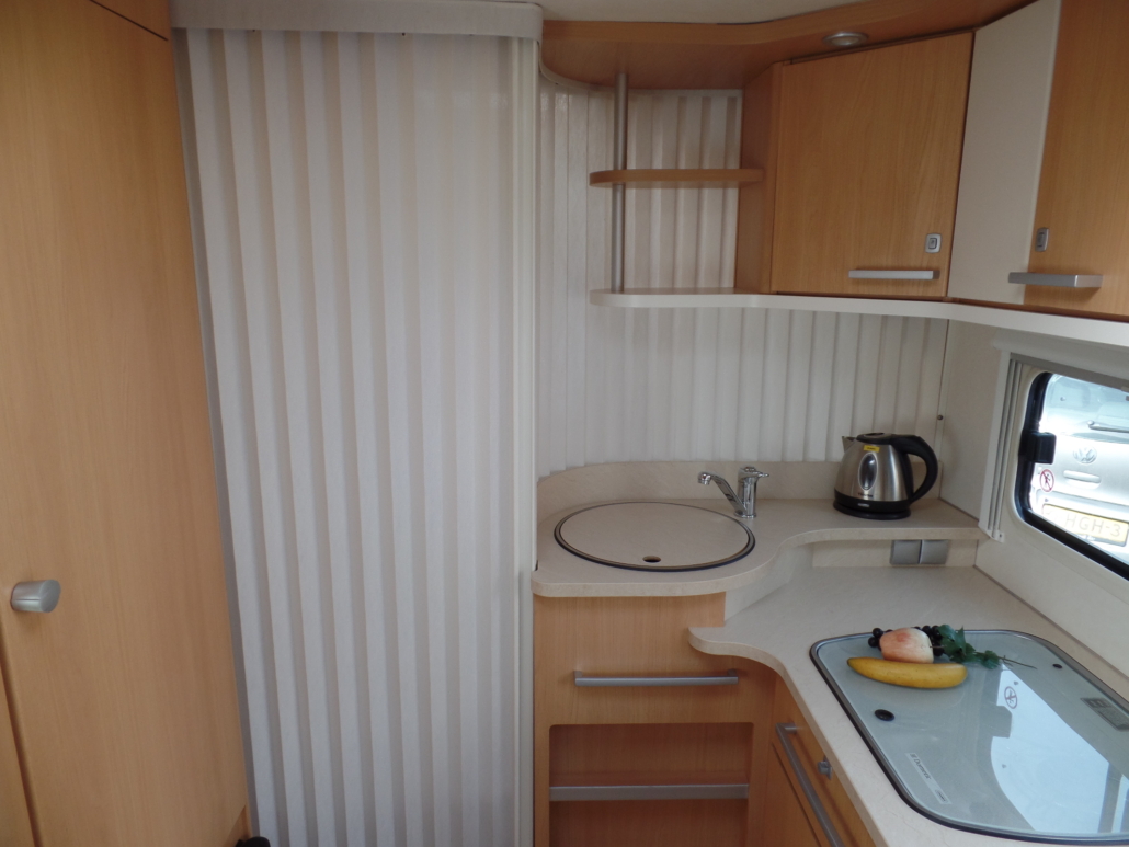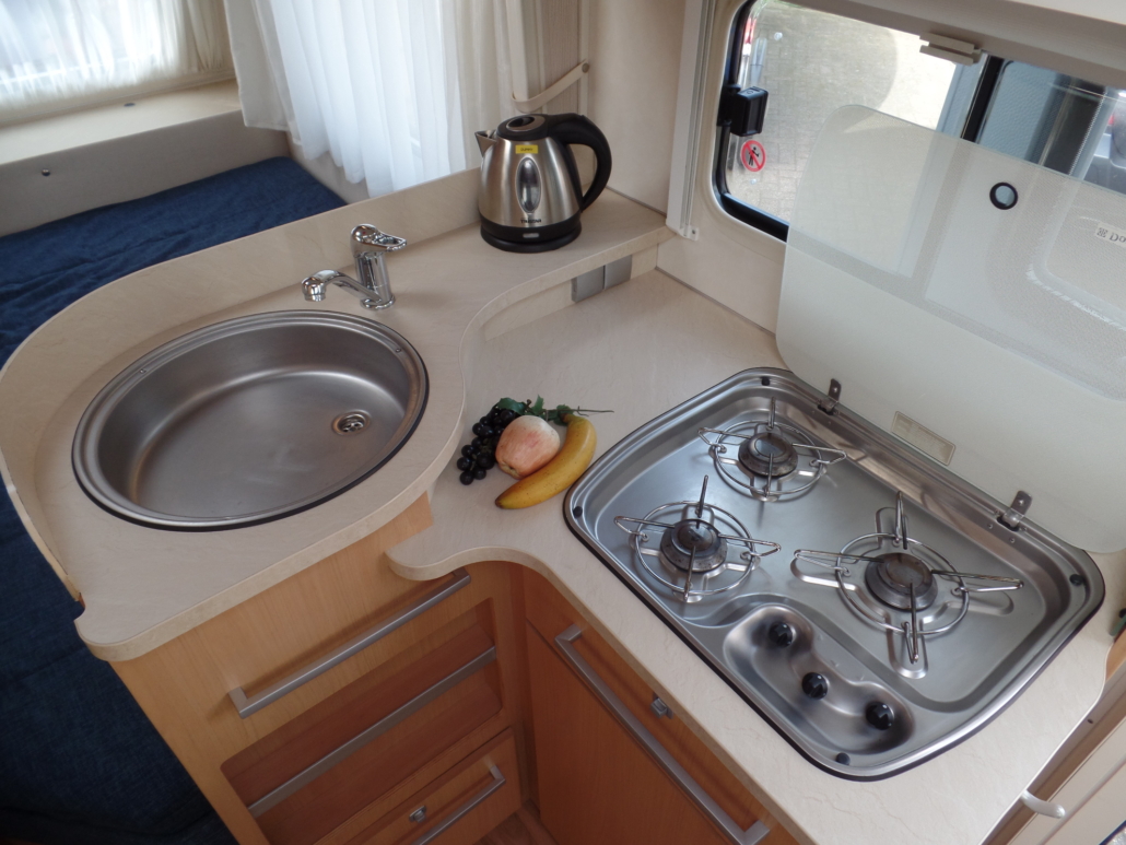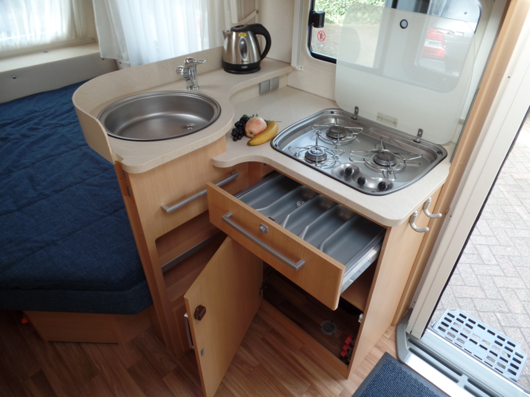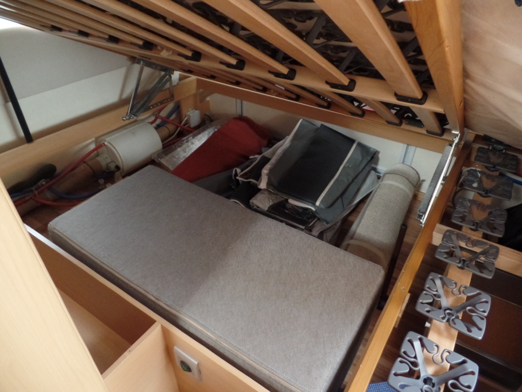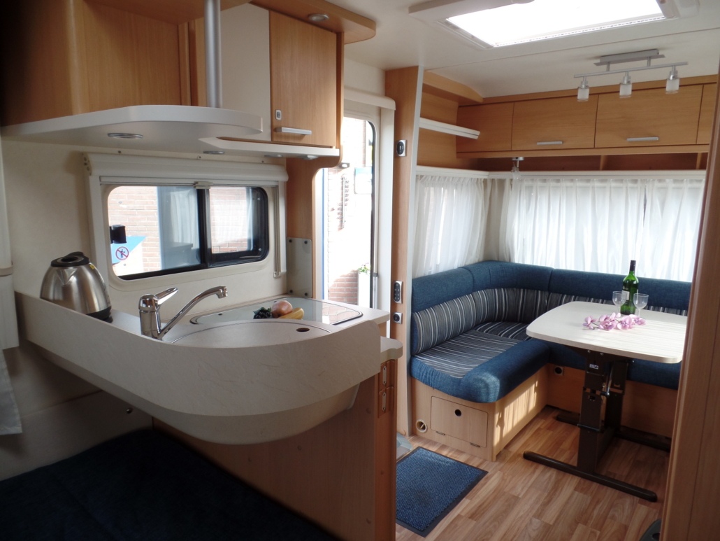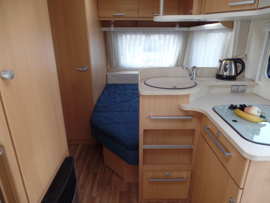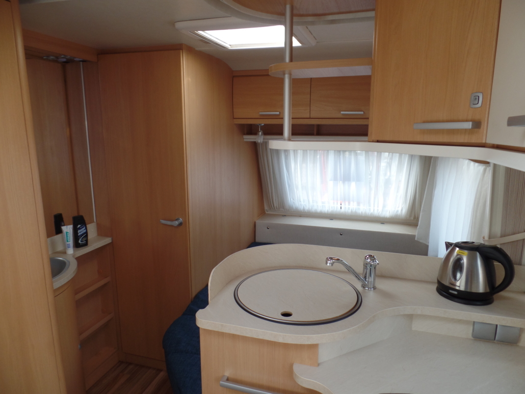 Voor:Vast bed in de lengte (frans bed) met toilet en wastafel